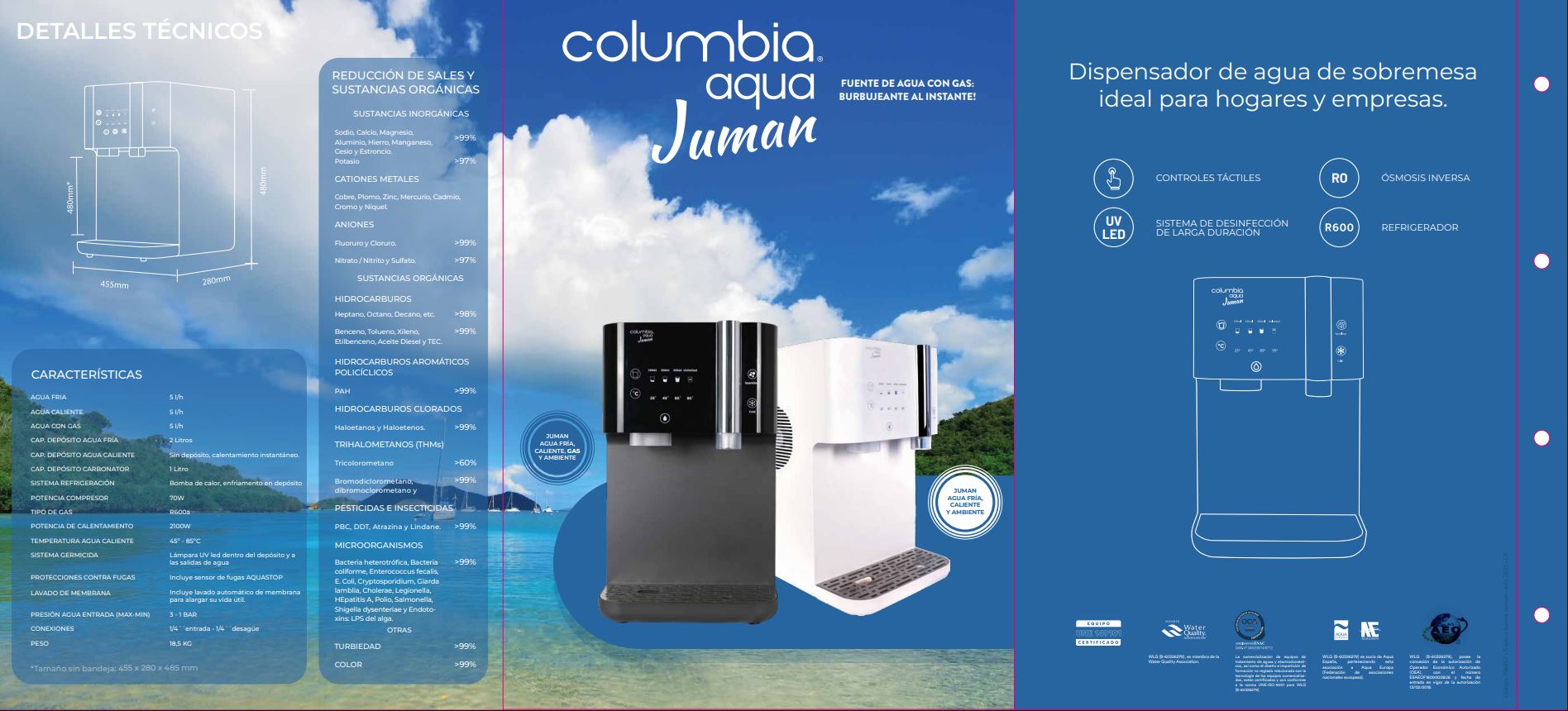Diseñada para la comodidad y la eficiencia, la Columbia Aqua JUMAN se integra perfectamente en cualquier espacio gracias a su diseño compacto y elegante. Su facilidad de uso la convierte en una opción ideal tanto para el hogar como para entornos profesionales.